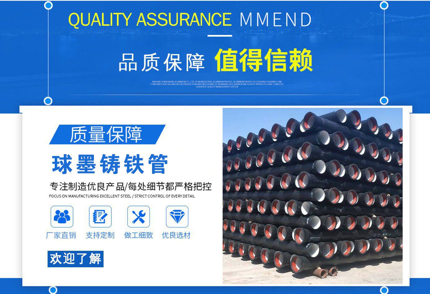 山西飛翔鑄業(yè)有限公司是一家以新興技術(shù)致力于研制開(kāi)發(fā)、生產(chǎn)、銷(xiāo)售、施工安裝各種球墨管廠家,球墨鑄鐵管價(jià)格,國(guó)標(biāo)球墨管,k9球墨鑄鐵管,國(guó)標(biāo)球墨鑄鐵管,離心球墨鑄鐵管等系列鑄鐵產(chǎn)品。公司擁有完善的銷(xiāo)售、售后服務(wù)體系及一支由鑄造專(zhuān)家、工程師組成的精通產(chǎn)品設(shè)備和生產(chǎn)鑄造的技術(shù)力量隊(duì)伍。隨著企業(yè)的發(fā)展,我們積累了豐富的鑄造經(jīng)驗(yàn)與科技水平。使得產(chǎn)品具有高強(qiáng)度、高韌性、耐腐蝕性強(qiáng)等性能。同時(shí),我們獲得質(zhì)量管理體系認(rèn)證、產(chǎn)品質(zhì)量認(rèn)證、職業(yè)健康體系認(rèn)證、環(huán)境管理體系認(rèn)證。產(chǎn)品暢銷(xiāo)各地并打入韓國(guó)、新加坡等東南亞市場(chǎng)。 在未來(lái)的發(fā)展中,公司奉行誠(chéng)信共雙贏,合作創(chuàng)盛世的企業(yè)理念。讓我們一起共創(chuàng)美好未來(lái)! 公司產(chǎn)品采用良好的工藝流程,以確保產(chǎn)品質(zhì)量的穩(wěn)定性:以良好的設(shè)備,確保質(zhì)量的可靠性。廣泛應(yīng)用于國(guó)內(nèi)外城市的市政建設(shè),通信,自來(lái)水,消防,園林,環(huán)保等行業(yè),產(chǎn)品大獲贊譽(yù)! 我們有多年的井蓋生產(chǎn)經(jīng)驗(yàn),多名老技術(shù)工人有將近二十年的生產(chǎn)經(jīng)驗(yàn),還聘請(qǐng)多名新技術(shù)研發(fā)人員,因?yàn)槲覀兪冀K堅(jiān)信質(zhì)量才是未來(lái)生存的根本,只有把質(zhì)量保證了,企業(yè)才會(huì)有更加美好的未來(lái)。公司堅(jiān)持用心服務(wù),誠(chéng)信為本,與時(shí)俱進(jìn),科技為先的企業(yè)理念,堅(jiān)持科技先導(dǎo)、竭誠(chéng)為廣大用戶(hù)服務(wù)。歡迎各界朋友蒞臨我公司參觀,指導(dǎo)洽談業(yè)務(wù),相信選擇我們就是選擇我們共贏的明天...